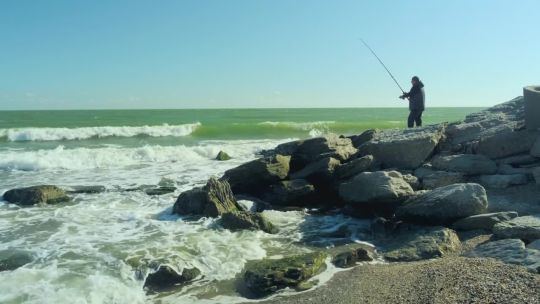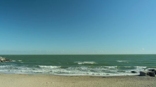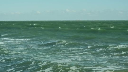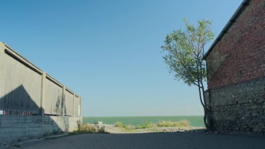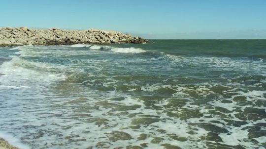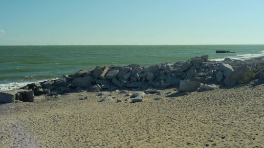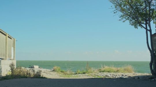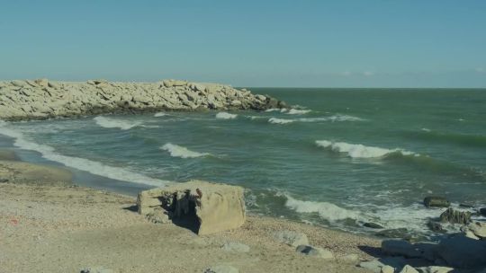 Coastal views of the Caspian Sea. Beaches, oil rigs, and unique saline landscapes.