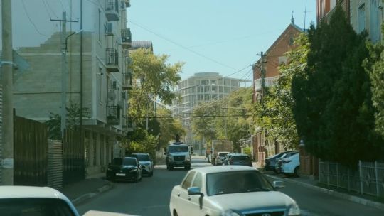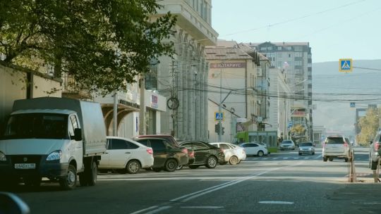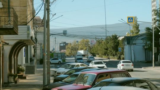 Epic mountain ranges, deep valleys, and snow-capped peaks of the Caucasus Mountains. High-altitude nature and winding roads.