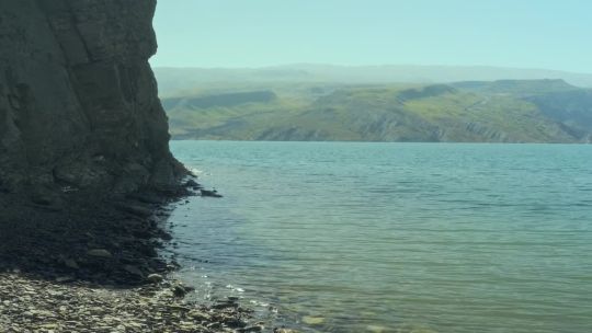 Epic mountain ranges, deep valleys, and snow-capped peaks of the Caucasus Mountains. High-altitude nature and winding roads.
