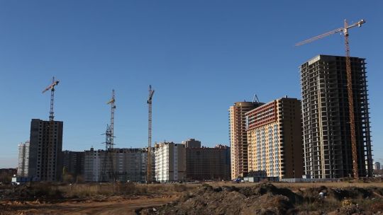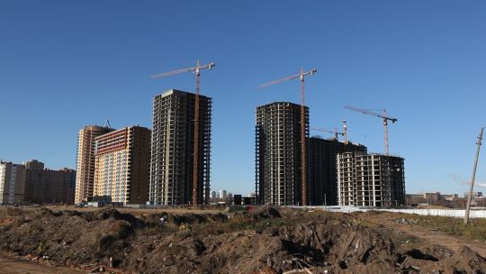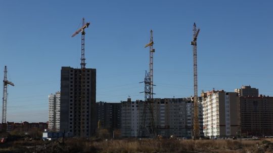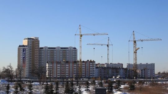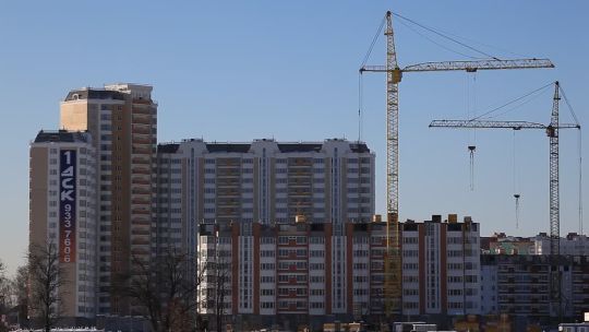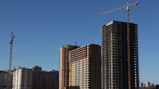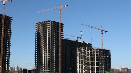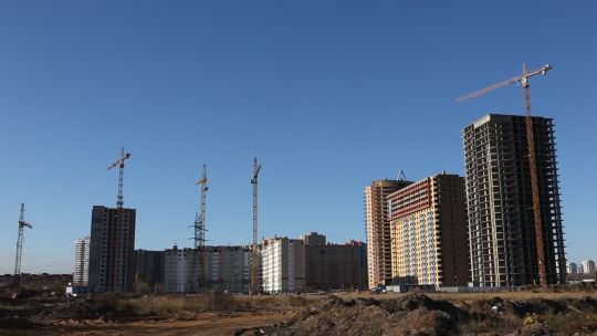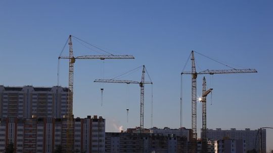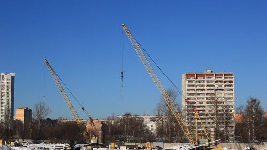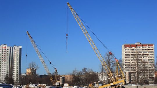 Collection of 4K and 5K videos of construction sites in the city. Cranes, building processes, and urban development.
