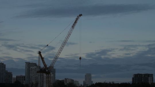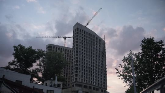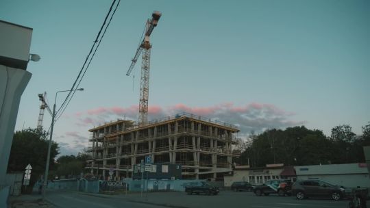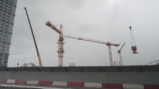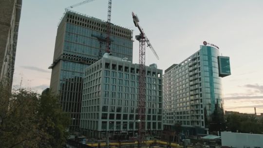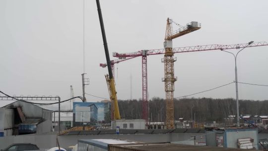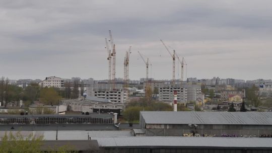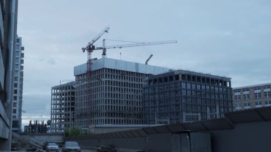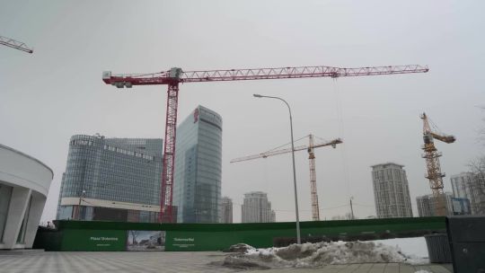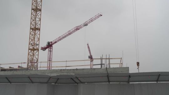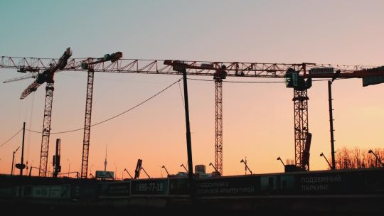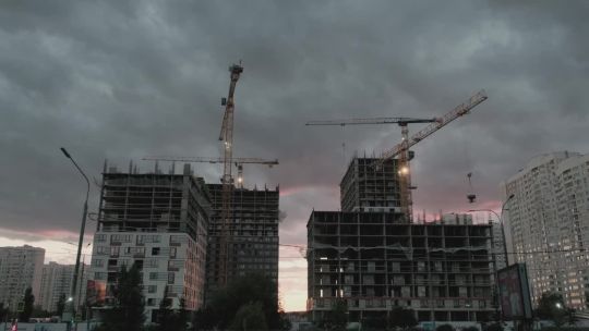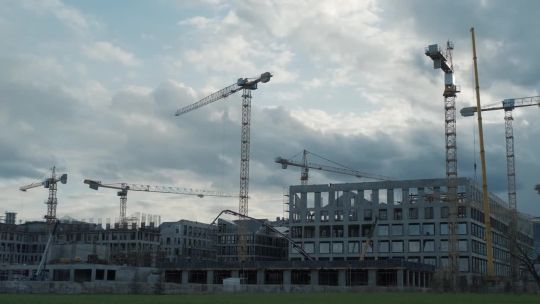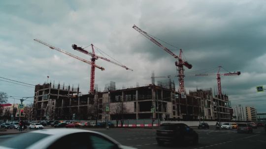 Collection of 4K and 5K videos of construction sites in the city. Cranes, building processes, and urban development.