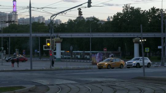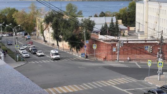 Collection of 4K and 5K videos of crossroads and intersections in the city. Complex traffic flows, turning vehicles, and traffic lights.