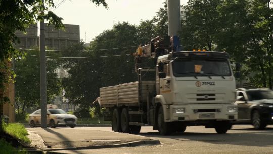Collection of 4K and 5K videos of Kamaz trucks in the city. Heavy duty trucks, cargo transport, and Russian vehicle brand.