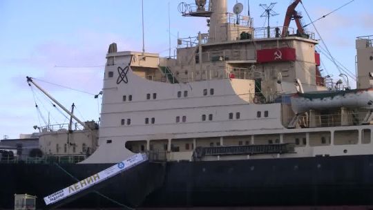 The power of the North. Videos of nuclear-powered icebreakers in the harbor or among Arctic ice.