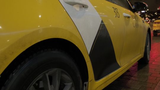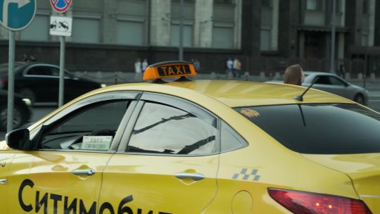 Collection of 4K and 5K videos of taxis in the city. Yellow cabs, ride-hailing services, and passengers getting in and out.