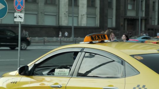 Collection of 4K and 5K videos of taxis in the city. Yellow cabs, ride-hailing services, and passengers getting in and out.