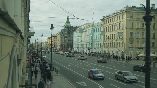 Buy 4K and 5K videos of Nevsky Prospect in St. Petersburg. Main street, historic buildings, and urban life.