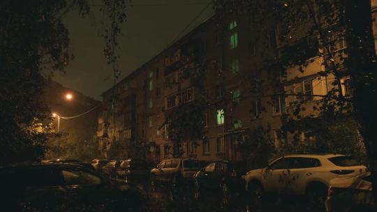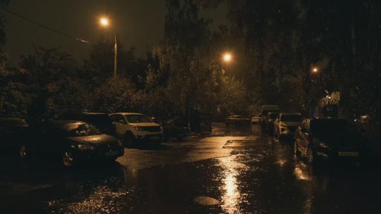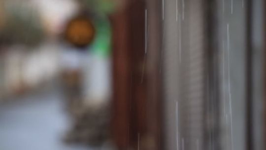 Buy 4K and 5K rain videos. Cars and people move in the rain in a city. Drops on the glass