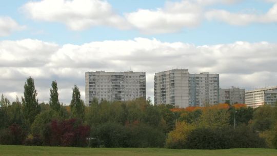 Buy 4K and 5K videos of residential buildings in the city. Apartments, housing, and living spaces.