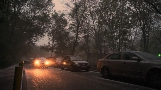 Collection of winter snow 4K and 5K videos. People and vehicles are moving through the city in a snowstorm. Snowflakes are falling